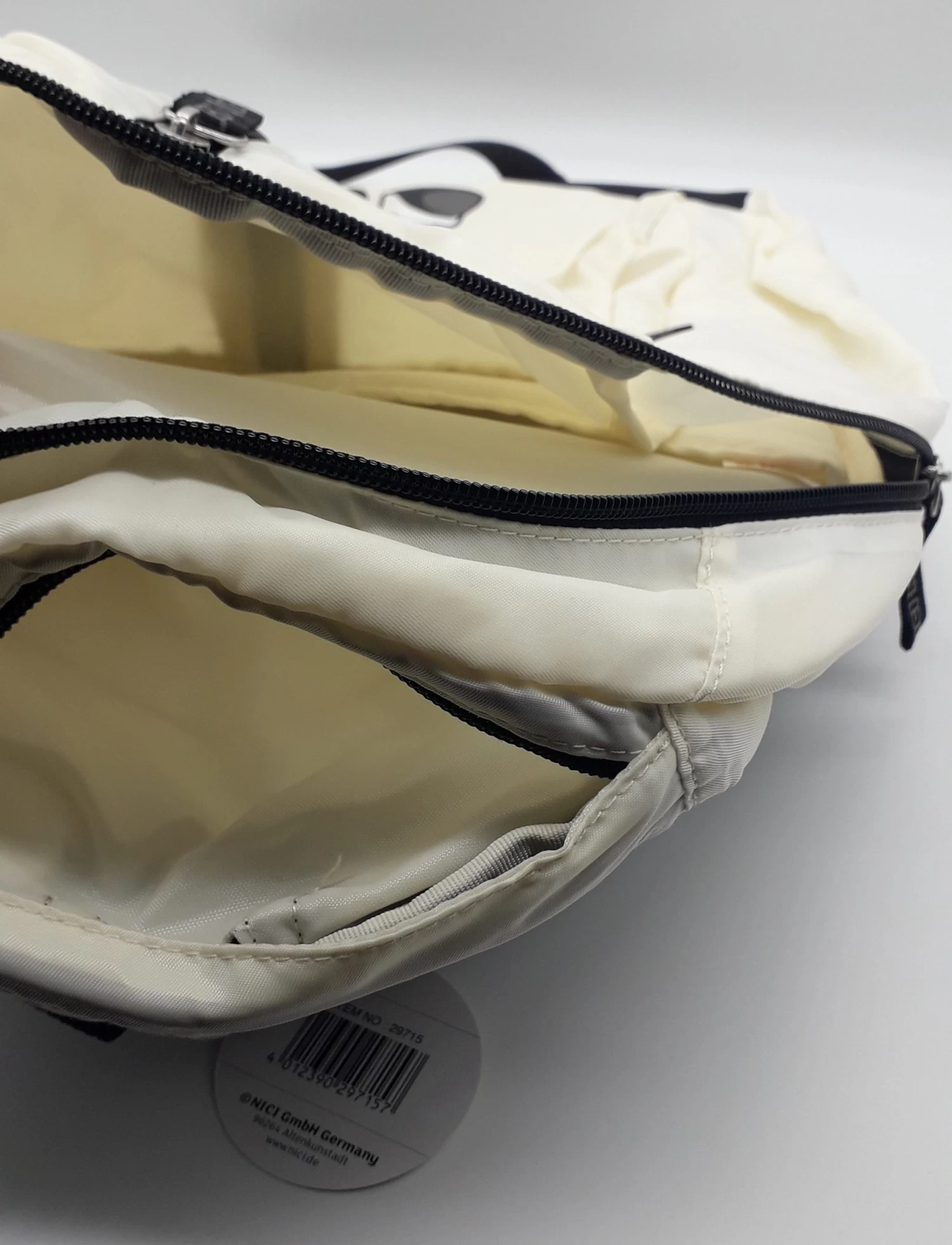 Mit kleinen Vordertaschen sowie einem geräumigen Hauptfach