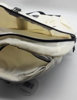 An einer Seite befindet sich ein kleines Fach mit Gummizug – an der Rückseite der Handtasche ist noch ein kleines Außenfach, welches mit Reißverschluss geöffnet werden kann.