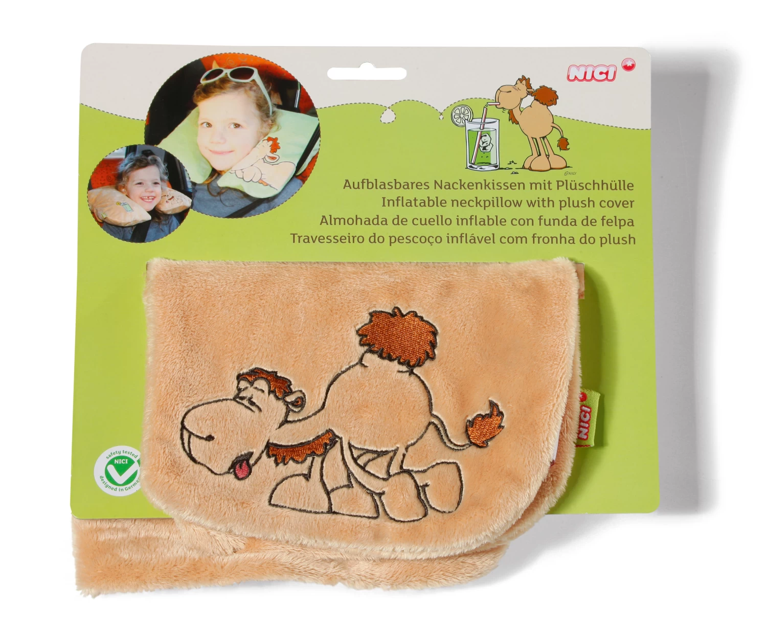 Ideal für unterwegs – das Kissen kann genau nach den individuellen Bedürfnissen aufgeblasen werden und ist kuschelig weich